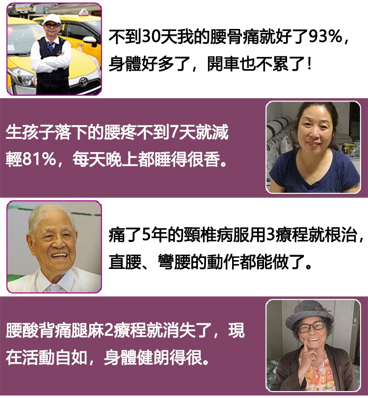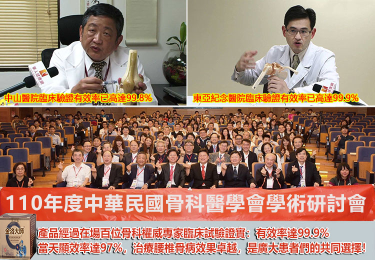 本產品是目前市面上最有效的腰椎骨病專用藥➡經過在場百位骨科權威專家臨床試驗證實:有效率達99.9%,當天顯效率達97%,治療腰椎骨病效果卓越,讓腰椎骨病治療更簡單有效,是廣大患者們的共同選擇!